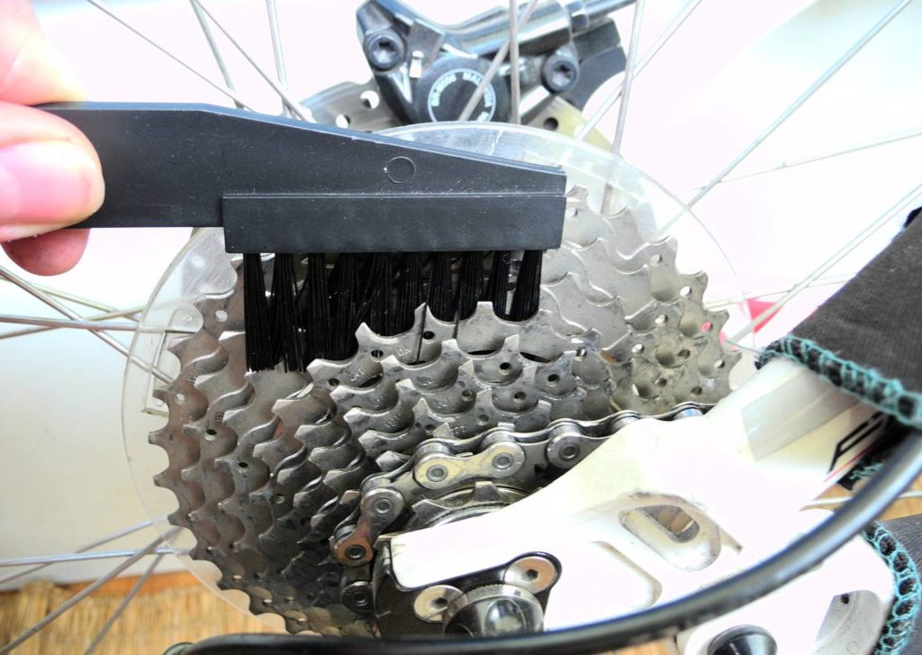 Выбираете любую подходящую вам щетку и с ее помощью избавляетесь от пыли и грязи. Чтобы результат был лучше, можно использовать какое-нибудь моющее средство. Такую щетку будет удобно взять с собой в велопоход. Из минусов – не самый лучший результат чистки, а также высокая трудоемкость.