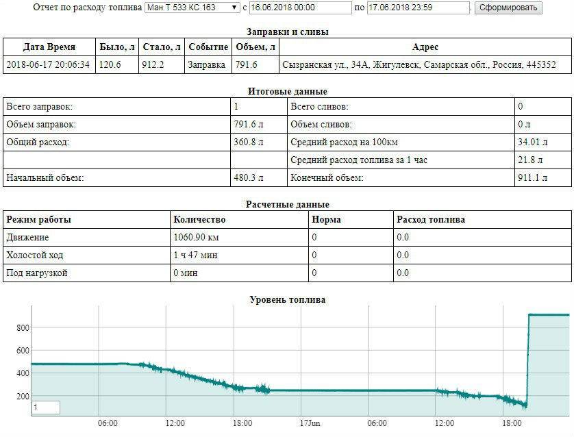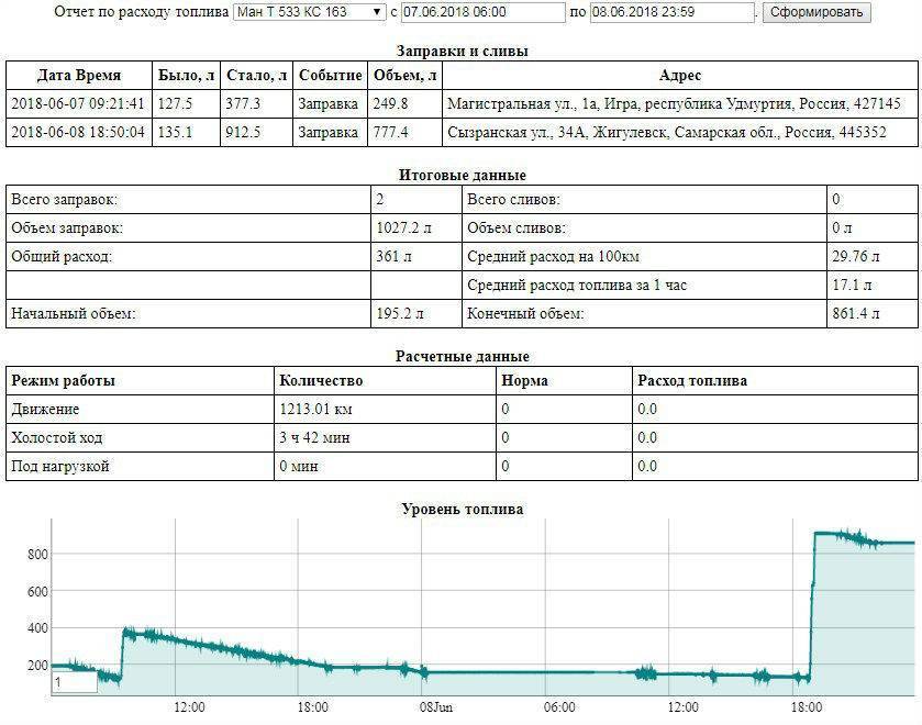 Для примера возьмем отчет расхода топлива двух разных водителей на одной и той же машине с разницей в неделю.