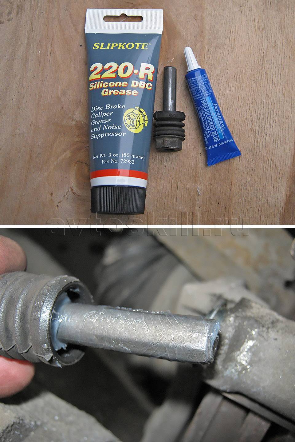 Реже помогает смазка гнезд направляющих. Для проведения работ потребуется особая смазка для суппортов, отличающаяся своей густотой. Она наносится на деталь, что позволяет забыть о ней на несколько тысяч километров пробега.