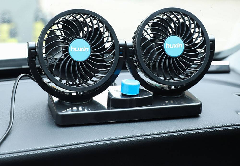 - На присоске — универсальные вентиляторы, которые по желанию крепятся на приборной панели или лобовом стекле. Главная проблема — постоянное сваливание при движении по плохой дороге.