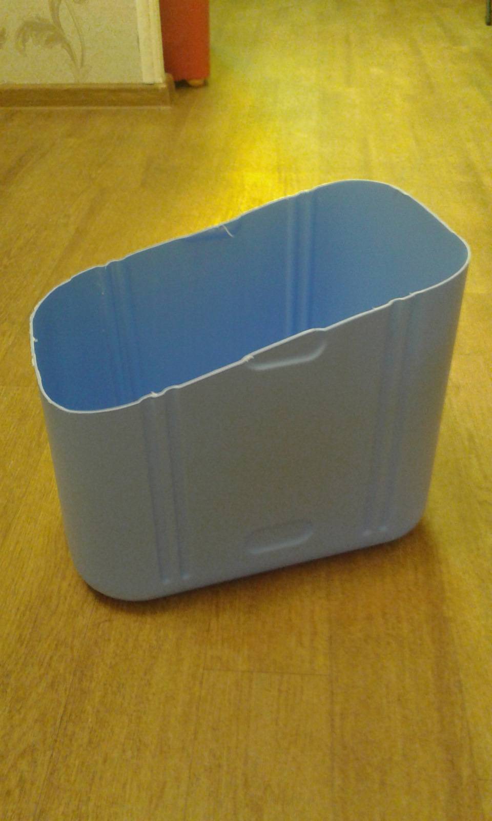 Материал:1. Две пластиковые канистры (20 л.) — 400 рублей.2. Кожзам (2 м.) 600 рублей.3. Пластик отделочный — 150 рублей.4. Клей момент в банке — 380 рублей.5. Кисточка — 20 рублей.6. Оцинковка из старого оконного отлива.