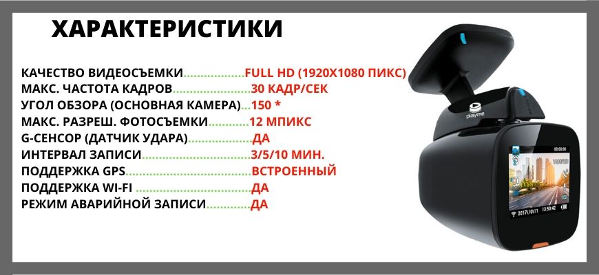 - Наличие встроенного аккумулятора и режим записи на парковке.