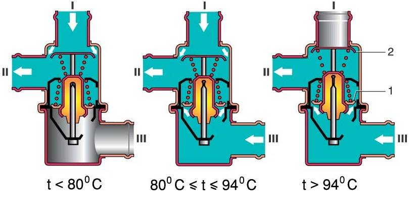Данный клапан автоматически открывается в момент, когда машина начинает перегреваться, и закрывается, если двигатель начинает быстро остывать.
