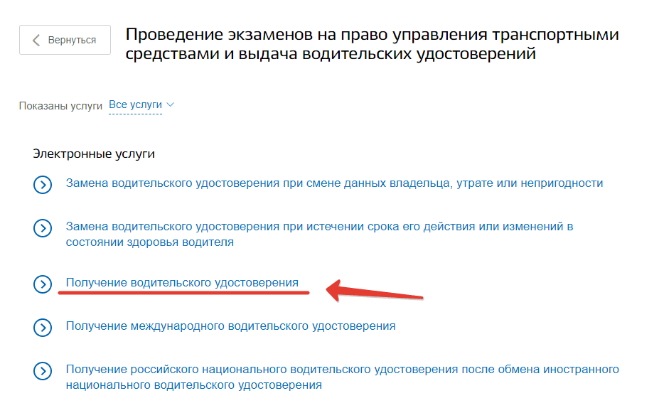 Для сведения, официальное название услуги: «Проведение экзаменов на право управления транспортными средствами и выдача водительских удостоверений (в части выдачи российских национальных водительских удостоверений при замене, утрате (хищении) и международных водительских удостоверений».