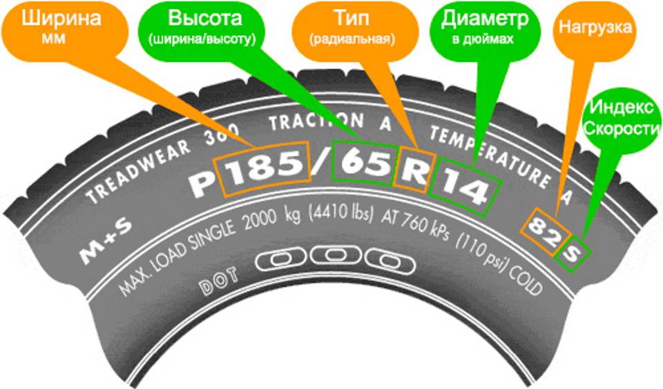 Обеспечивает выбор модели, подходящей под установленный колёсный диск. Маркируется на боковине комбинацией цифр и латинских букв, которые обозначают: