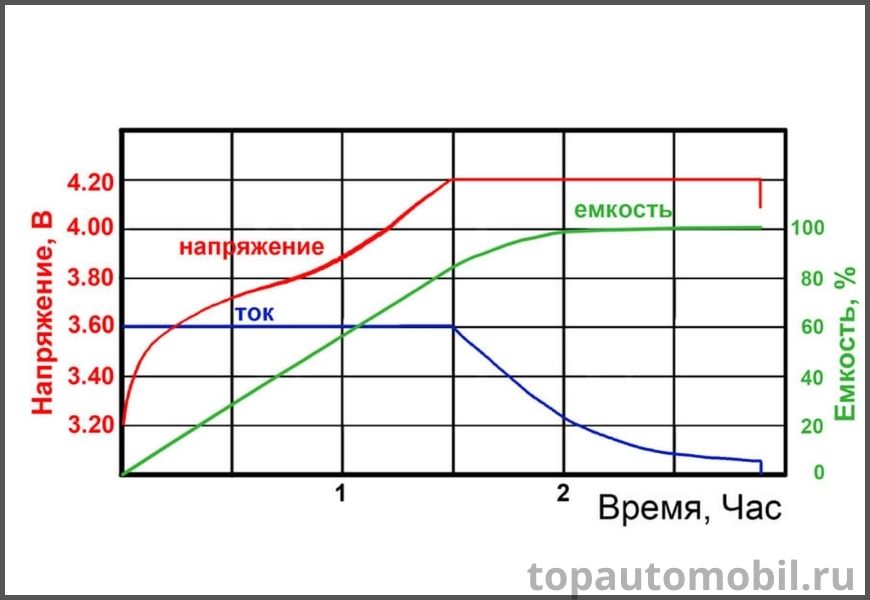 Принцип форсированного заряда предполагает установку значения зарядного тока на уровне 95% от номинальной ёмкости батареи – 0,95С.