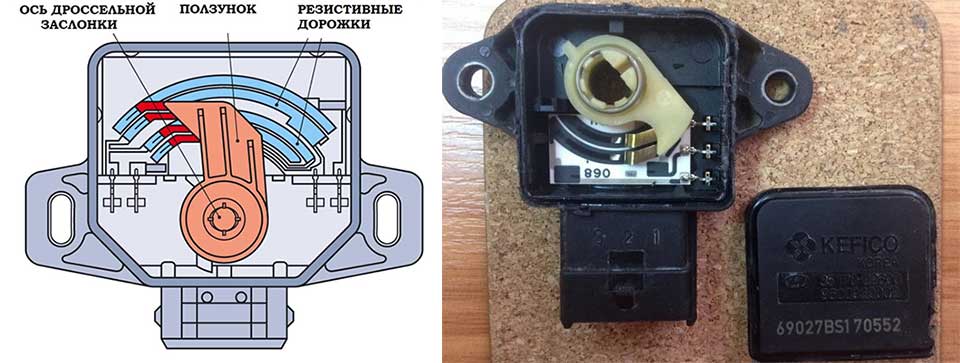 Назначение — фиксация позиции заслонки дросселя в определенный момент времени. При этом положение меняется с учетом того, в каком месте находится педаль газа и насколько открыта заслонка.