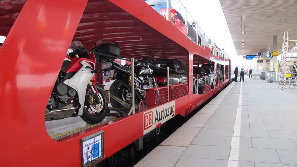 Для тех, кому нужно перегнать двухколёсный транспорт в зимнее время года или просто на очень большое расстояние, подойдёт перевозка по ж/д. Примерно по такому же сценарию доставляют автомобили и другой габаритный груз. Попутно с покупкой пассажирского билета на поезд приобретается так называемое грузовое место.