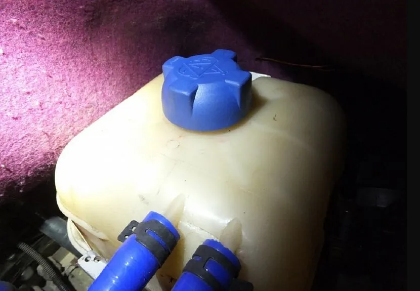 Расширительный бачок установлен в моторном отсеке на левом брызговике.