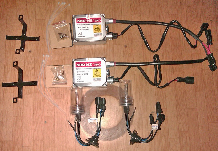 - сам комплект ксенона (2 Лампочки, 2 блока розжига, комплект хоммутационных проводов, если речь идет о би-ксеноне);
