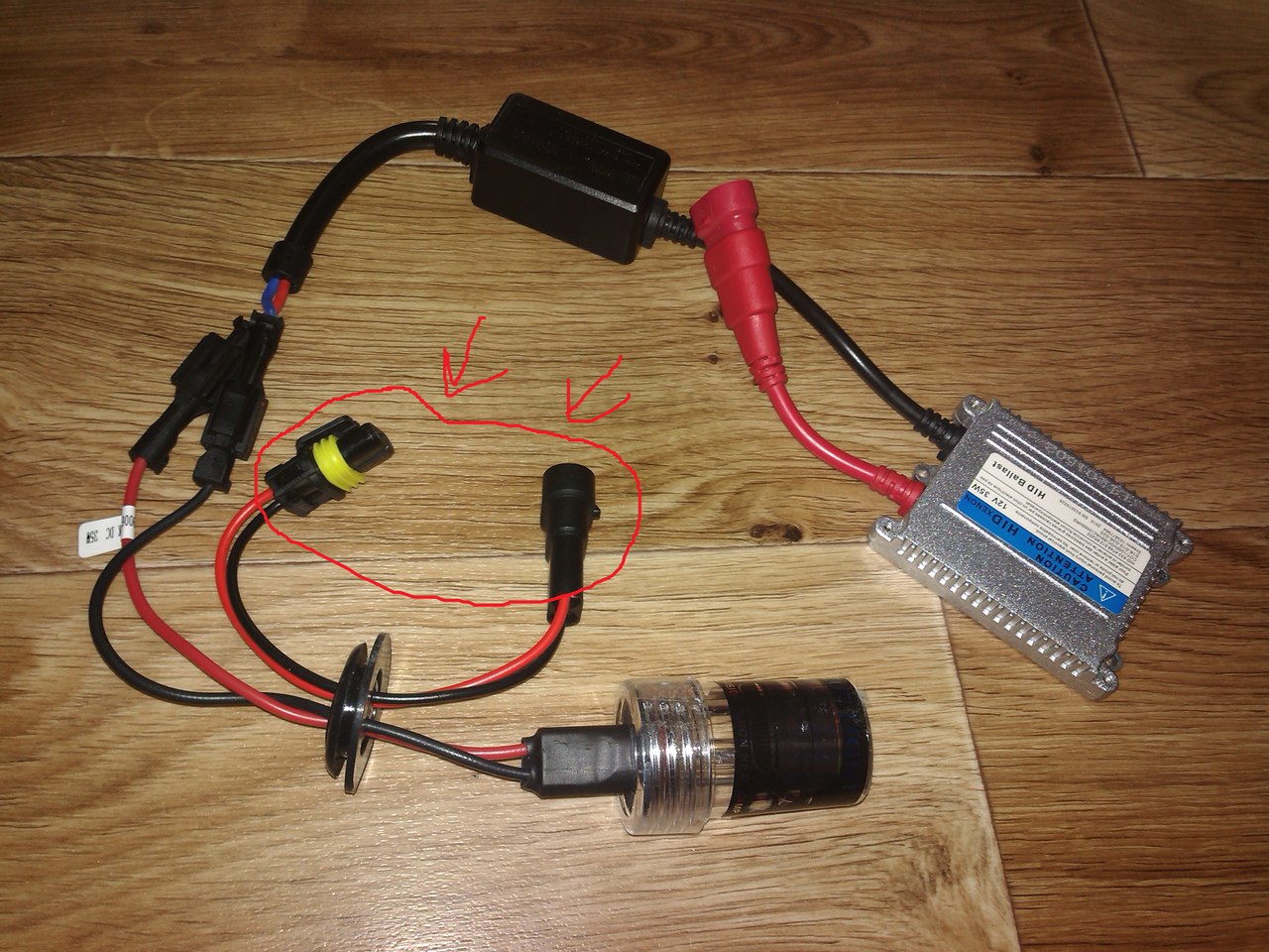- оставшиеся два провода «мама-папа» соединяются (до отчетливого щелчка!) между блоком розжига и ксеноновой лампой;
