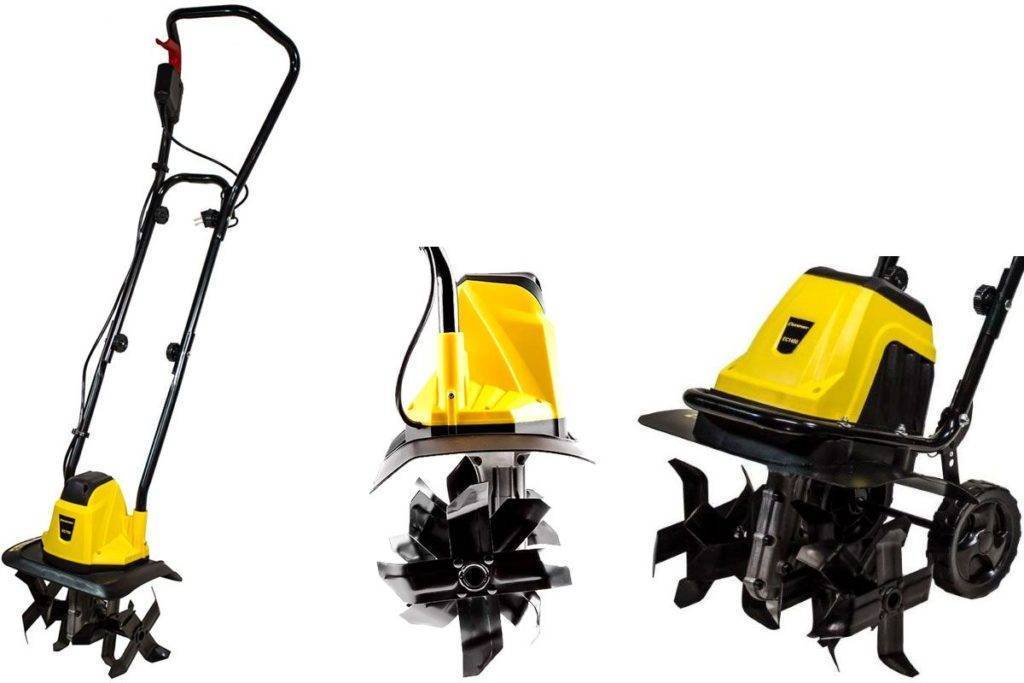 Невзирая на неприметный внешний вид, данная модель полюбилась многим пользователям благодаря многим положительным качествам. Этот агрегат легкого класса работает от электричества. В комплект поставки входит 4 запасных фрезы. Устройство пашет землю очень тихо, не выделяя в атмосферу выхлопных газов. Единственное неудобство состоит в необходимости иметь электрический шнур достаточной длины, чтобы дотянуться до ближайшей розетки в доме. Диаметр фрезы позволяет рыхлить почву на глубину 20 см.
