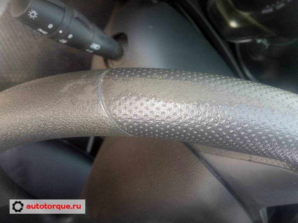 – как минимум быстро пачкается. Через 50 ткм уже прилично протирается руль,