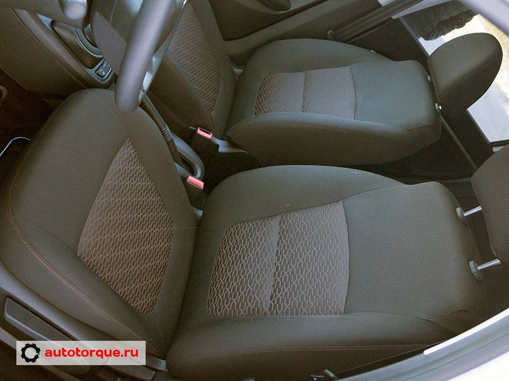 Здесь обычный кондиционер, хотя на Приорах был климат контроль. Сиденья удобные, подлокотник тоже удобный. Задние сиденья имеют свою форму, а не просто плоские скамейки. Детские кресла фиксируются. Машина сзади просторная. Спинки передних сидений рычажком поднимаются и опускаются быстро.