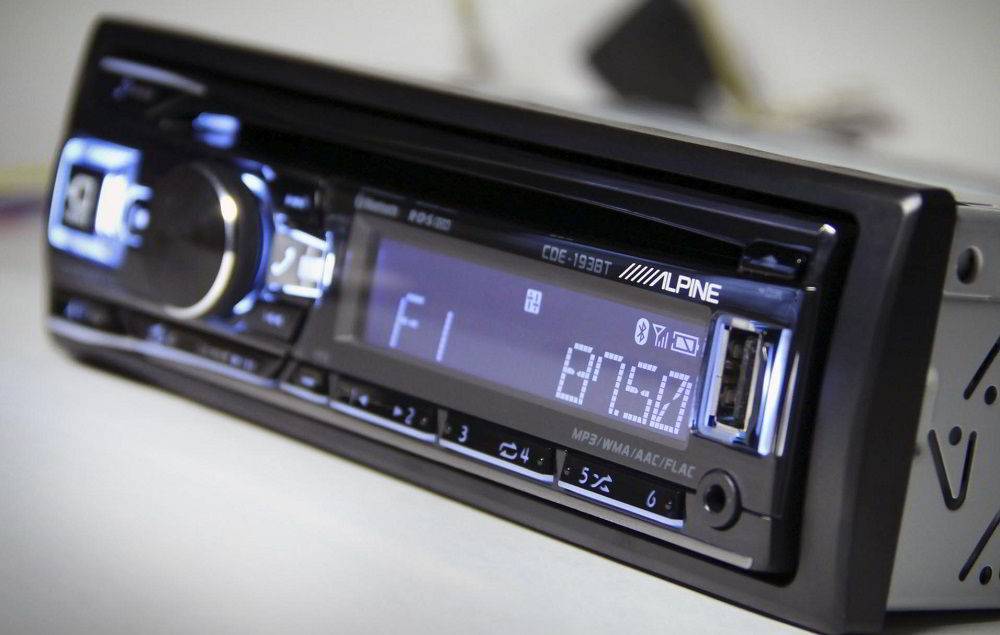 4. Alpine CDE-193BT. Наверное, лучший представитель данного сегмента. Конечно, вам придется заплатить немного больше за это устройство, но его функции окупят переплату. Есть возможность одной кнопкой настраивать функции сабвуфера, если он подключен к системе. Также Alpine порадует вас отличной совместимостью с большинством гаджетов.