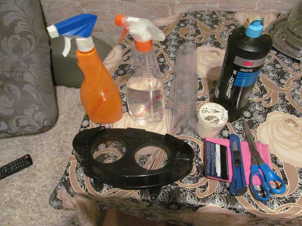 Всем привет. Зимой можно сделать много чего интересного и полезного. Мои стёкла приборной панели были в мелких царапинах, что вызывало неприятное ощущение. Свет тусклее тусклого, поэтому ночью ни одометров ни времени не было видно, плюс был затруднён ход рычажка сброса километража. Для начала я просто аккуратно снял спидометр и смазал литолом механизм сброса счётчика одометра, всё заскользило как положено. Удаление царапин чуть-чуть сложнее. Сразу скажу, что процесс идентичен с полировкой фар автомобиля. Но я полировал вручную, т.к. поролоновым кругом не добраться. Взял микрофибру, пару полиролей(среднюю и финишную), обезжирил всё антисиликоном и начал полировку.