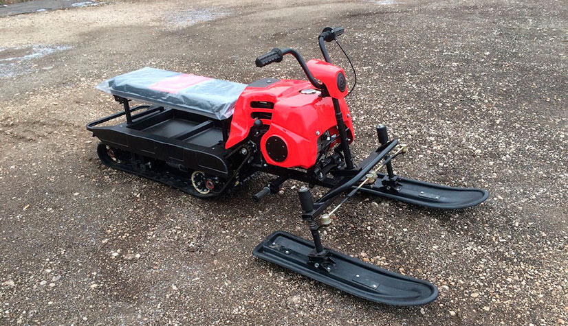 - В состав этой техники входит несколько легко разбираемых модулей. Такая конструкционная особенность позволяет экономить на техобслуживании и ремонте. Для хранения мини снегохода не требуется дополнительное помещение. В некоторых моделях есть кулачковая система фиксаторов с пружинами, что поможет собрать конструкцию за пару минут.
