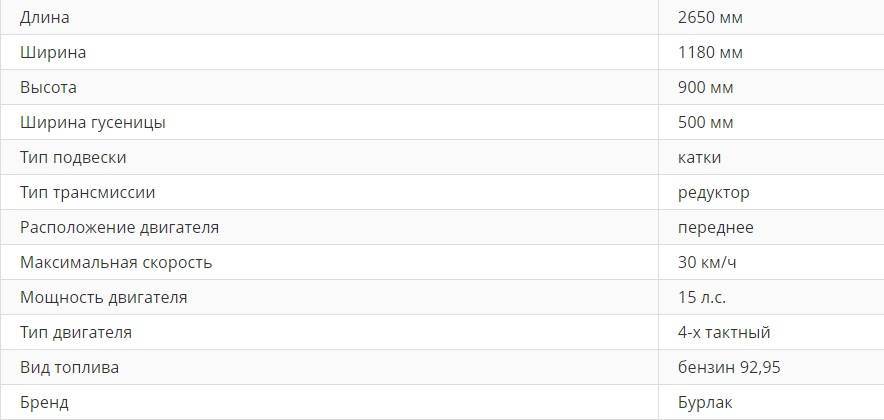 Мотобуксировщик Бурлак-М2 Vector 15 л.с: технические характеристики