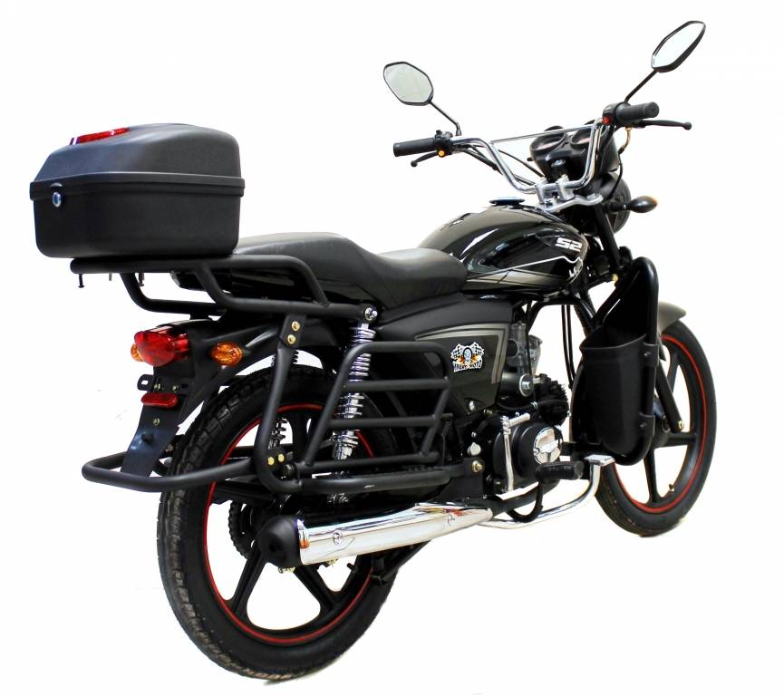 Еще на мопеде придумали такое решение, как грузовой отсек, который состоит из подставки и защитной решетки, что бы груз не попал в заднее колесо. На данный отсек уже можно установить кофры, дополнительные сумки, или просто привязать груз.