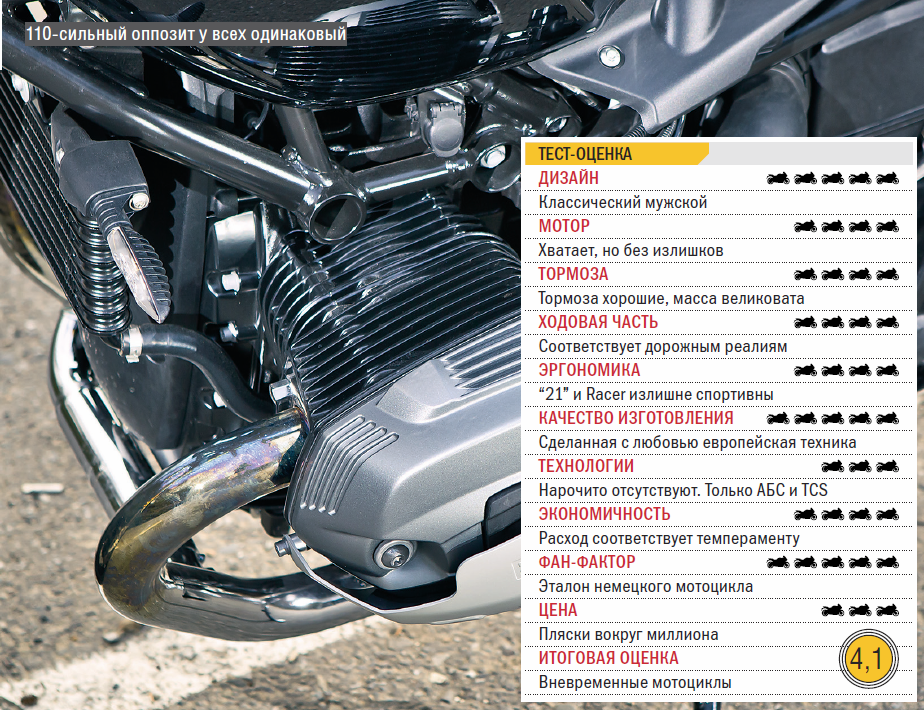 Те люди, у кого были классические оппозиты середины ХХ века, уже не в том состоянии здоровья, чтобы купить себе новый NineT . Целевой аудиторией этих мотоциклов будут, скорее, дети тех людей. У них остались в памяти воспоминания о пахнущем бензином и выхлопом папином мотоцикле, о поездках пассажиром за широкой спиной отца, о цыкающих звуках, которые горячий мотоцикл издавал, остывая после поездки, в гараже. Может, о фактах тихого семейного воровства, когда втайне от родителей ты ездил на этом мотоцикле. А может, и более сильные воспоминания о том, как это было обнаружено родителями или, не дай бог, полицией.