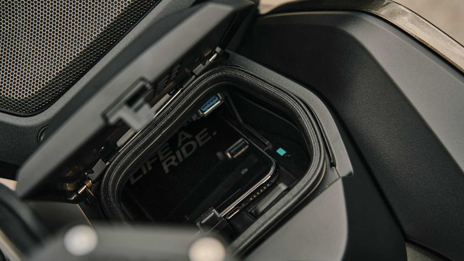 There’s a catalogue as long as your arm with more touring, cosmetic and performance accessories, including luggage, billet ali parts, active cruise control and an air-cooled cubby hole with an integrated wireless charger.