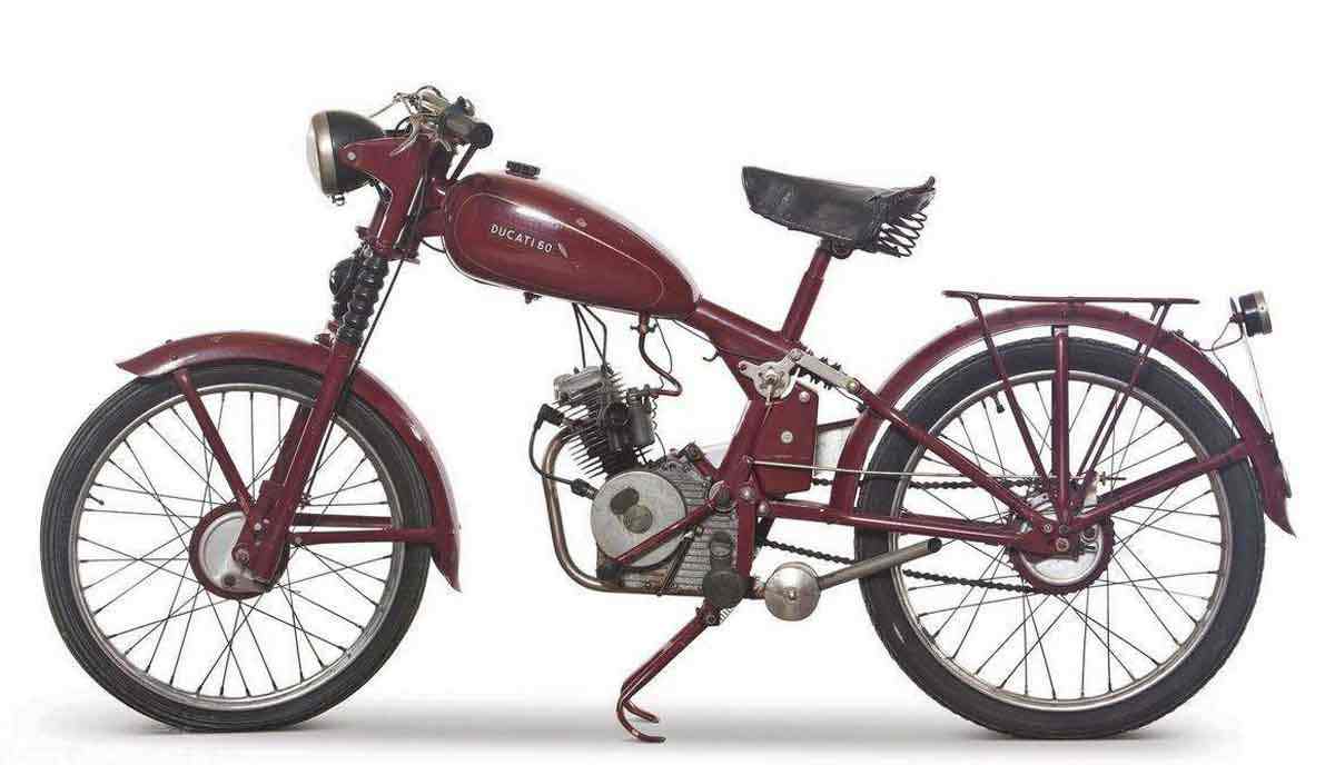 Первое детище братьев в сфере разработки мототехники – Cucciolo. Это веломобиль, ещё крайне далёкий от того, что мы называем мотоциклом. Однако, объём 50 кубов и хорошие обороты сделали его популярным среди населения. Простая конструкция и доступная цена моделей от Дукати позволили в 50 стать лидером в производстве подобной техники.