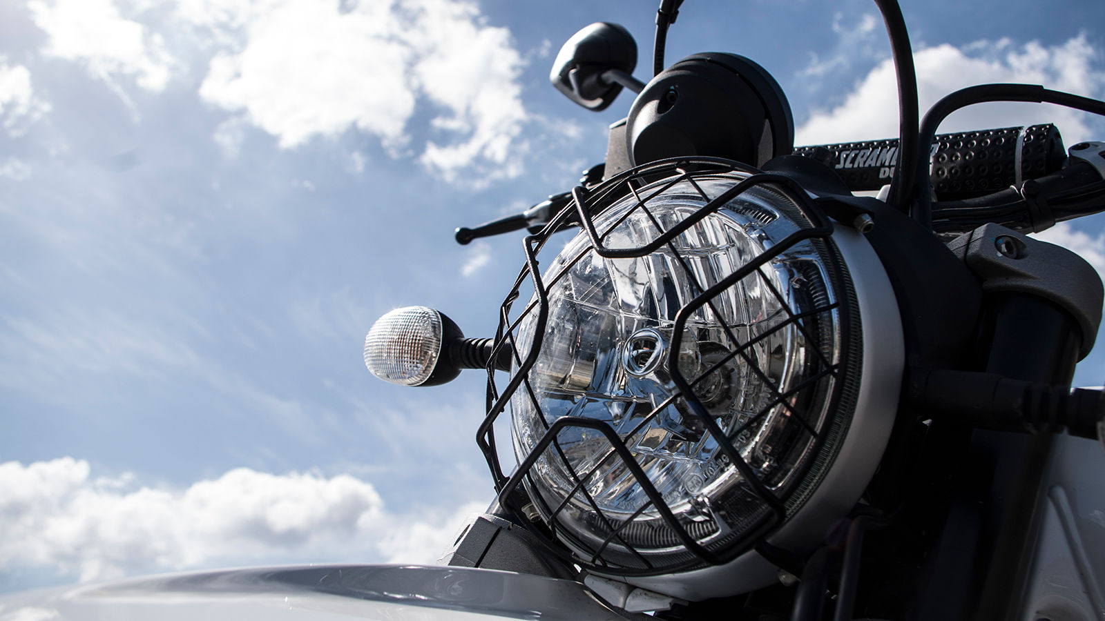 Спиральные шины Pirelli Scorpion Rally считаются универсальными, хороши на дороге и бездорожье. Они чувствуют себя отлично на асфальте, но не так уверенно проходят рыхлые грунты. Байкер рискует увязнуть на этих покрышках в песке, но шины не подведут на проселках. Мотоцикл оснащен тормозами Brembo с ABS. Передняя подвеска оборудуется одним, выполненным в стиле ретро колесом диаметром 13 дюймов с 4-поршневым суппортом и диском 9,6 дюймов.