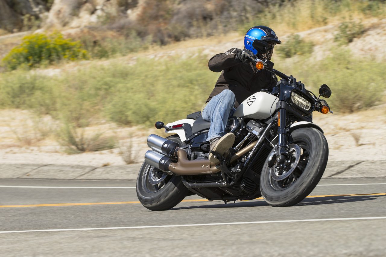 The “hero bike” of the new Softail line-up features dual front disc brakes, upside-down 43mm forks, performance shock with external preload hand adjuster and an upswept 2-1-2 exhaust.
