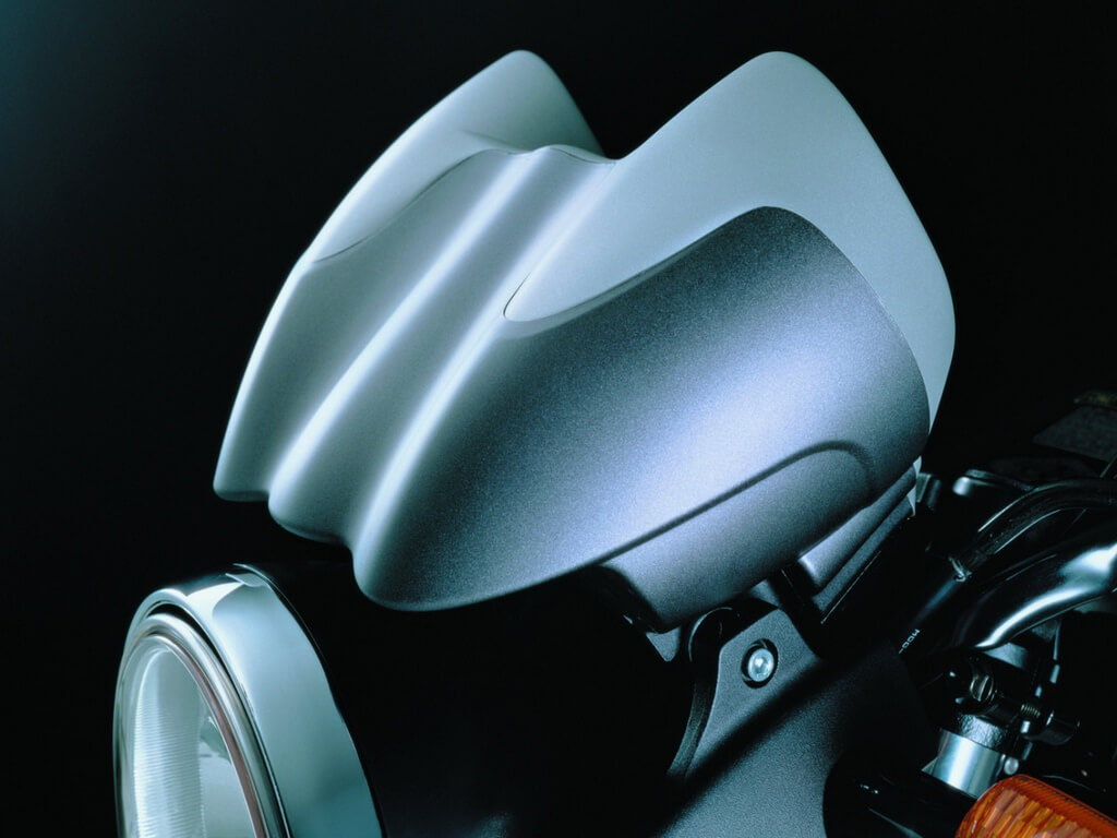 После испытаний в аэродинамической трубе мотоцикл модернизировали. Щиток приборов сделали так, что он дополнительно выполняет роль ветрозащиты. А роль антикрыла, для создания прижимной силы, выполняют боковые пластиковые накладки возле радиатора.