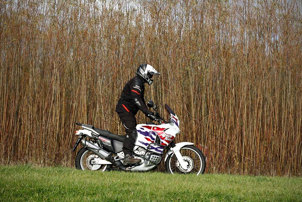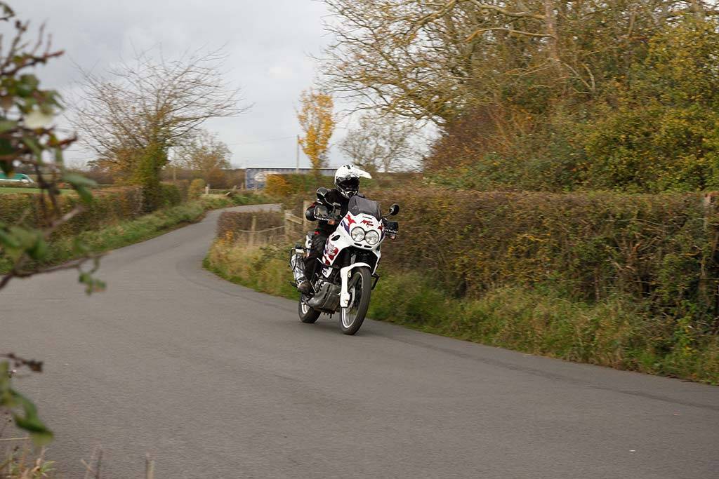 What also makes the 1998 Africa Twin quite so Parker Knoll comfy on the side roads is its wide seat perched at a sensible height of 840mm. Sat down low in the bike, with the small screen offering just enough wind protection, carving through the Warwickshire lanes is a beautifully sensory experience. The big twin motor burbles along beneath me like the best soundtrack in the world.