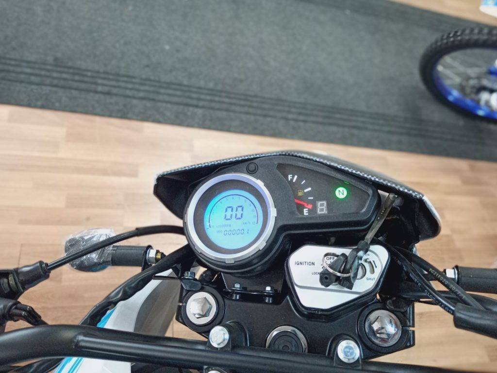 Вообще, что касается комплектации, то, пожалуй, Motoland из всей нашей троицы, упакован жирнее всех. Уже обозначенные ветровик и матричная LED оптика, с достаточно мощным светом. Но и тут не обошлось без косяков. С завода фара светит аки авиа прожектор. Не потому, что ярко, а потому, что в небо. Даже при самых низких настройках. Короче придется дорабатывать. Также на мотоцикле стильная цифровая панель приборов с указателем уровня топлива. А еще приборка меняет цвет с белого на красный, при достижении максимальных оборотов движка. Да и по внешнему виду XR250 Enduro мне нравится больше всех. Чего только стоит яркий двухцветный окрас «металлик» с качественными наклейками.