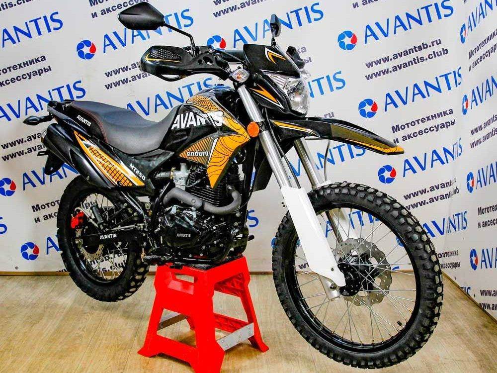 Avantis MT250 выглядит проще. Между прочим, по внешнему виду, это тот же мотоцикл, что и Motoland Enduro LT и ЗИД YX250GY-C5C, только с другим движком и подвеской. Наклейки среди всей нашей троицы у него самые дешманские и «одноразовые».