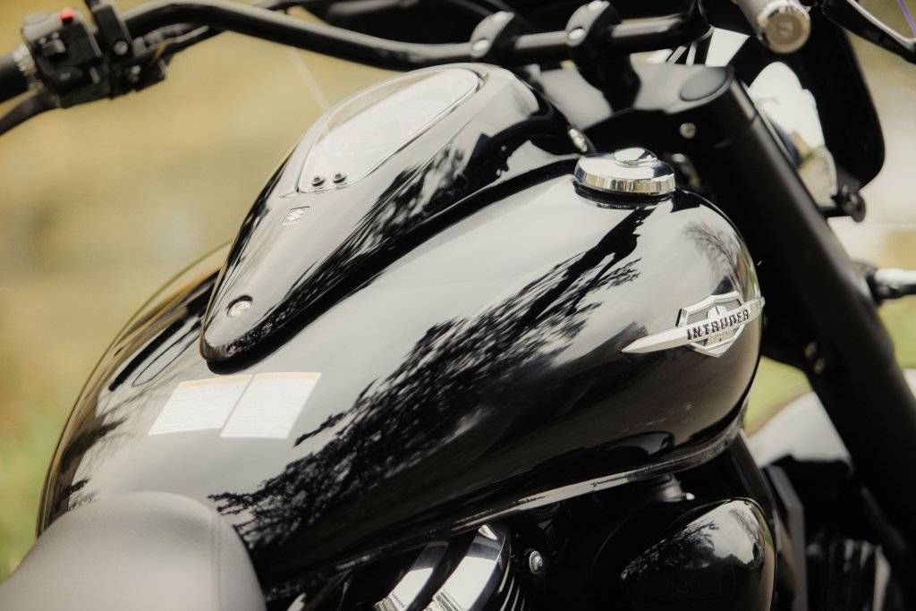 При первом знакомстве огромный и блестящий, как свежевымытый цирковой слон, Intruder просто поражает размерами и формами. Необычный силуэт фары, гигантский бак, раскидистый руль, размаху которого позавидуют и рога канадского лося, и широченное колесо на «240» создают неповторимый, брутальный и чем-то даже пугающий облик