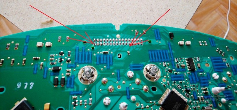 (на нее как раз подключается провод лампочки под ножкой 32, это минус).