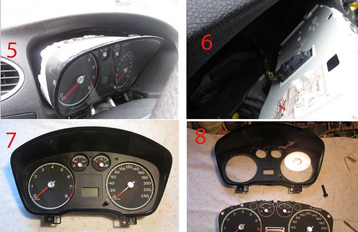В 90% неприятность кроется в контактах, которые находятся на плате приборной панели. Чтобы до них добраться, необходимо её полностью разобрать и освободить плату для пропайки. Снять приборную панель на втором Фокусе не сложно, для этого просто опускаем рулевую колонку, снимаем пластиковые накладки, выкручиваем два самореза и вынимаем приборку, предварительно отключив клеммную колодку.