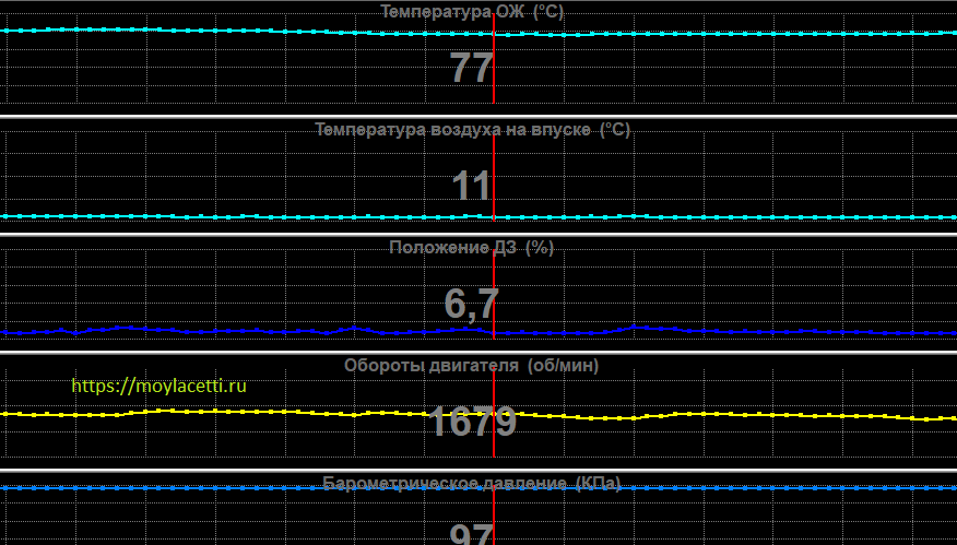 При термостате на 87 градусов, рабочая температура будет колебаться в районе 77-82 градусов при движении в холодное время года. В сильный мороз может быть и немного ниже — 73-81 градус.