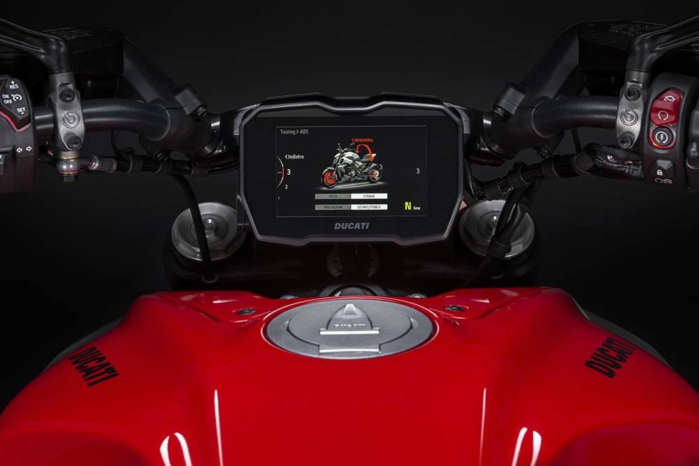 Этими функциями можно управлять с помощью нового пятидюймового TFT-дисплея, который наконец-то внедрили на Diavel, вместо того убожества, что стояло на всех предыдущих итерациях.