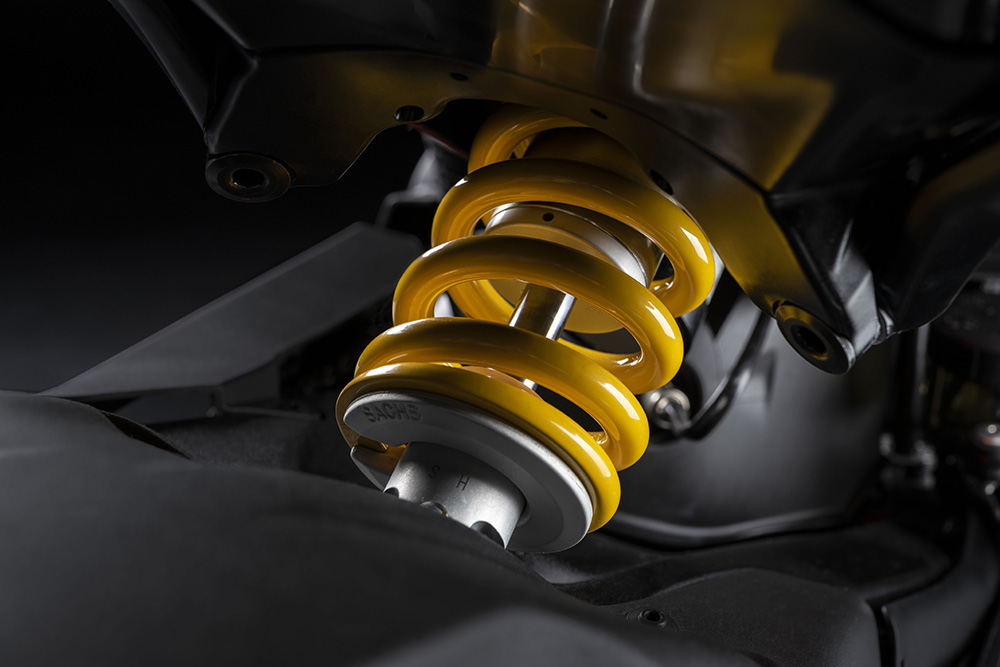 Но, не стоить забывать, что это самая простая версия, и именно по-этому здесь установлена хорошая, но не топовая подвеска, в виде безымянной 50 мм вилки (ход 120 мм) с механическими регулировками и таким же моноамортизатором, который, кстати, прибавил 15 мм к ходу (145 мм), что очень существенно для данного класса мотоциклов. Таким образом мы ждем и топовые подвески и новомодную электронику на версиях “S” и выше.