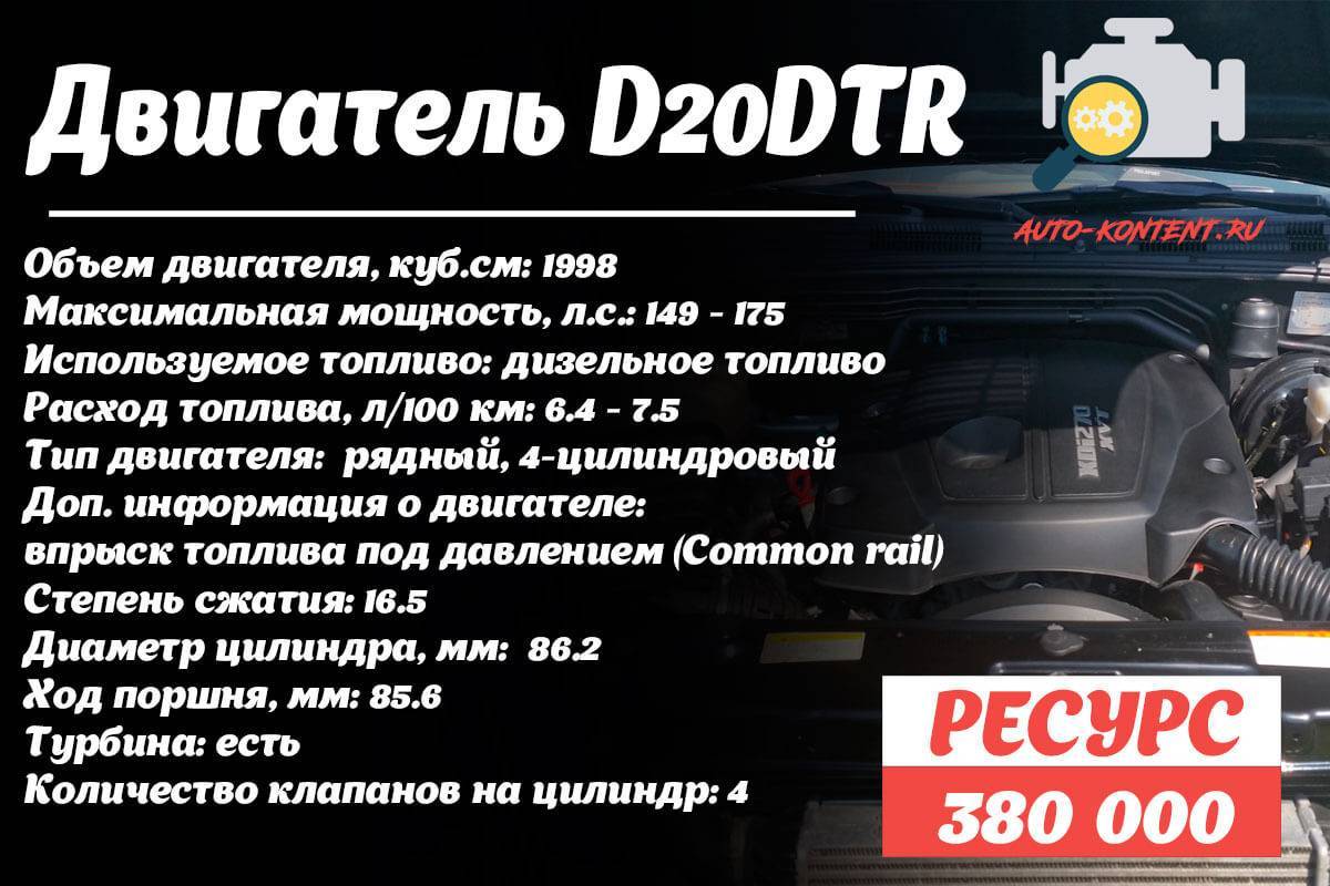 - D20DTR – еще один турбированный двухлитровый дизельный двигатель уже на 149 лошадиных сил;