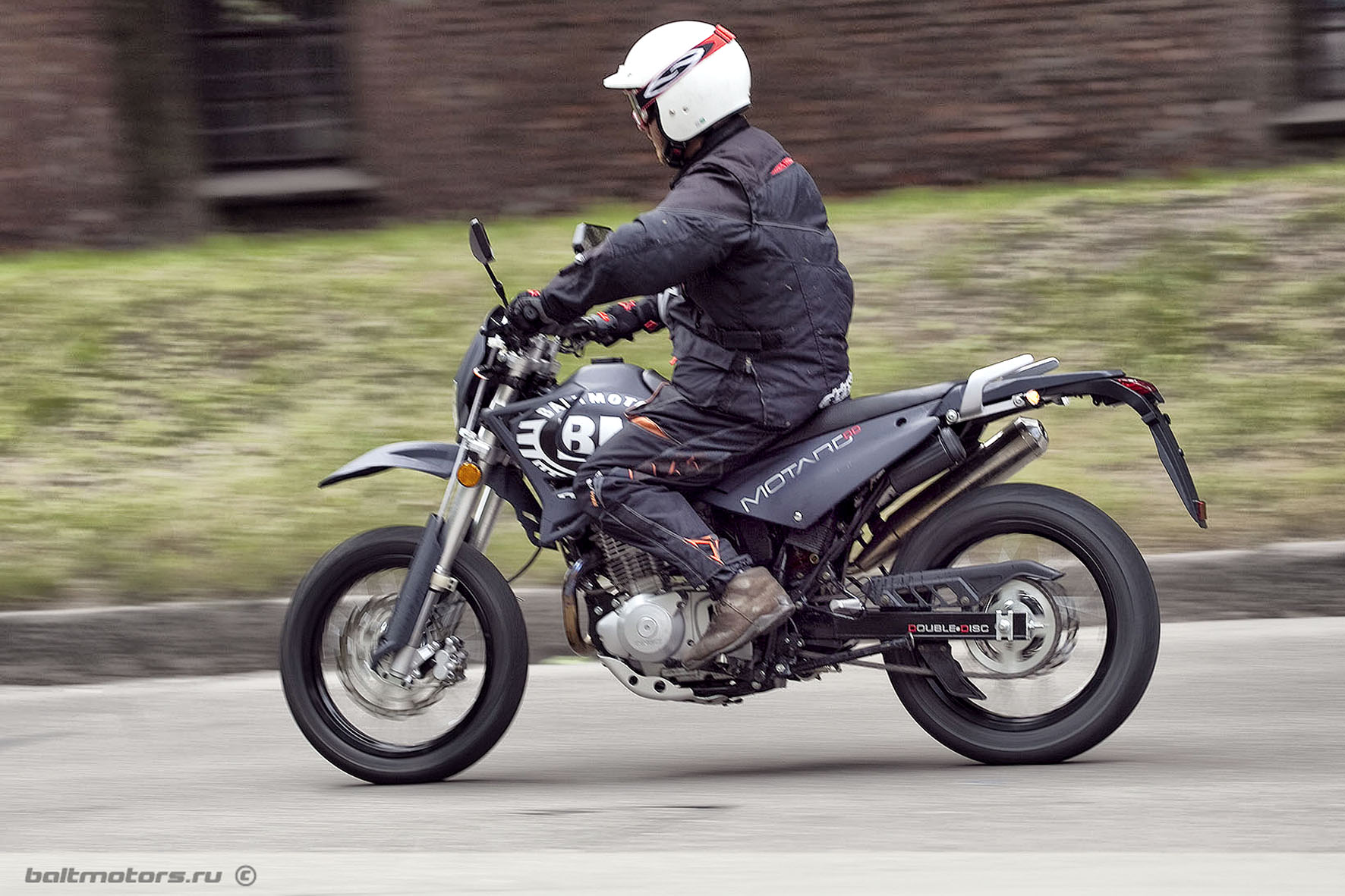 В модели сочетаются лучшие качества дорожных мото и эндуро. Балтмоторс Мотард 200 состоит из пластика повышенной прочности, который защищает основные агрегаты. Кроме того, в мотоцикле довольно хороший уровень работы подвесок, широкие колеса и тормоза на гидравлике с высокой мощностью, это облегчает езду по городским трассам и бездорожью.