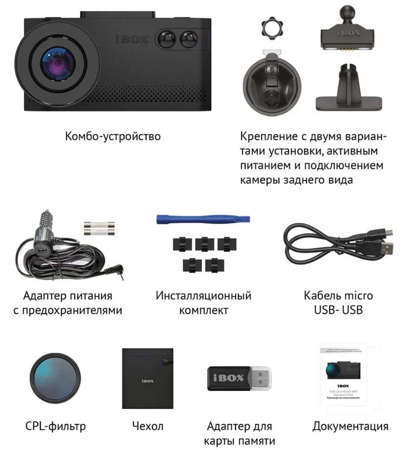 Перед описанием iBOX EVO LaserVision WiFi Signature Dual стоит выделить главные параметры комбо-устройства: