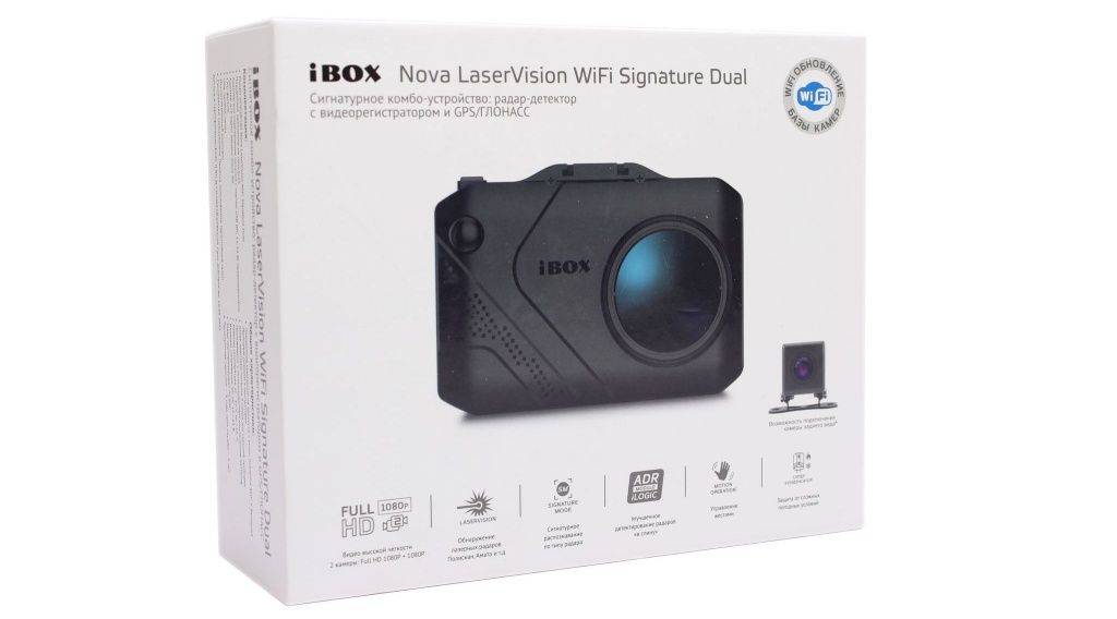 - LaserVision в комплекте с Signature Mode, а также модулем ADR iLogic, создают возможность обнаружения радарных устройств лазерного принципа действия. Кроме того, без внимания не остаются маломощные радарные установки, которые также попадают в поле зрения устройства. iBOX Nova LaserVision WiFi Signature Dual обладает высокой чувствительностью, позволяя обнаруживать любые модификации полицейских радаров на большом расстоянии.