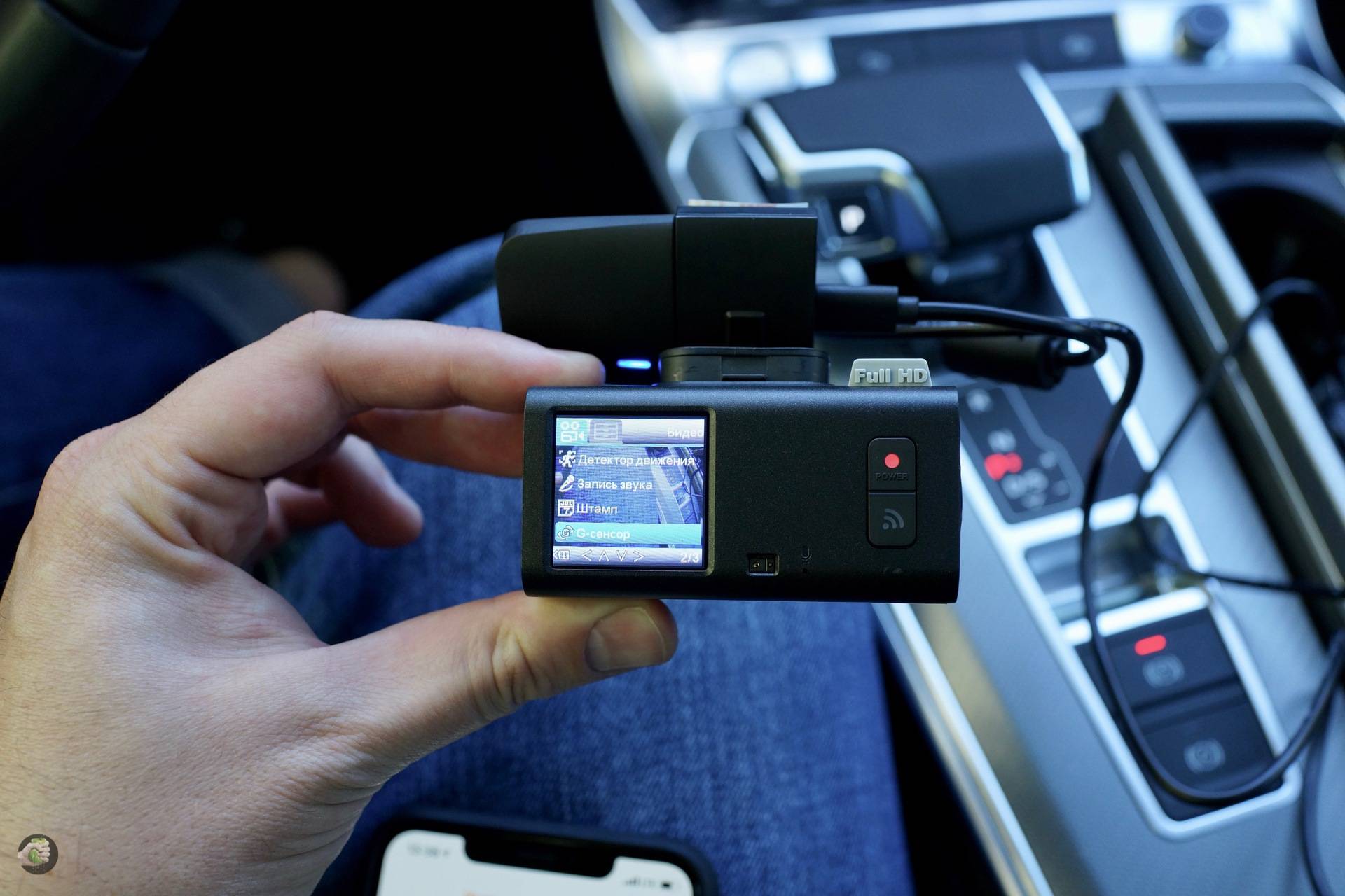 В настройках, с одной стороны, можно долго суетиться и играться, с другой — вам нужно только воткнуть карту памяти и поехать уже по своим делам. Конечно, к услугам пытливого автовладельца и G-сенсор для контроля в ночное время, и хорошо сделанный настраиваемый сенсор: провёл рукой перед дисплеем — запись сохраняется в защищённой папке, но можно выбрать и другое действие.