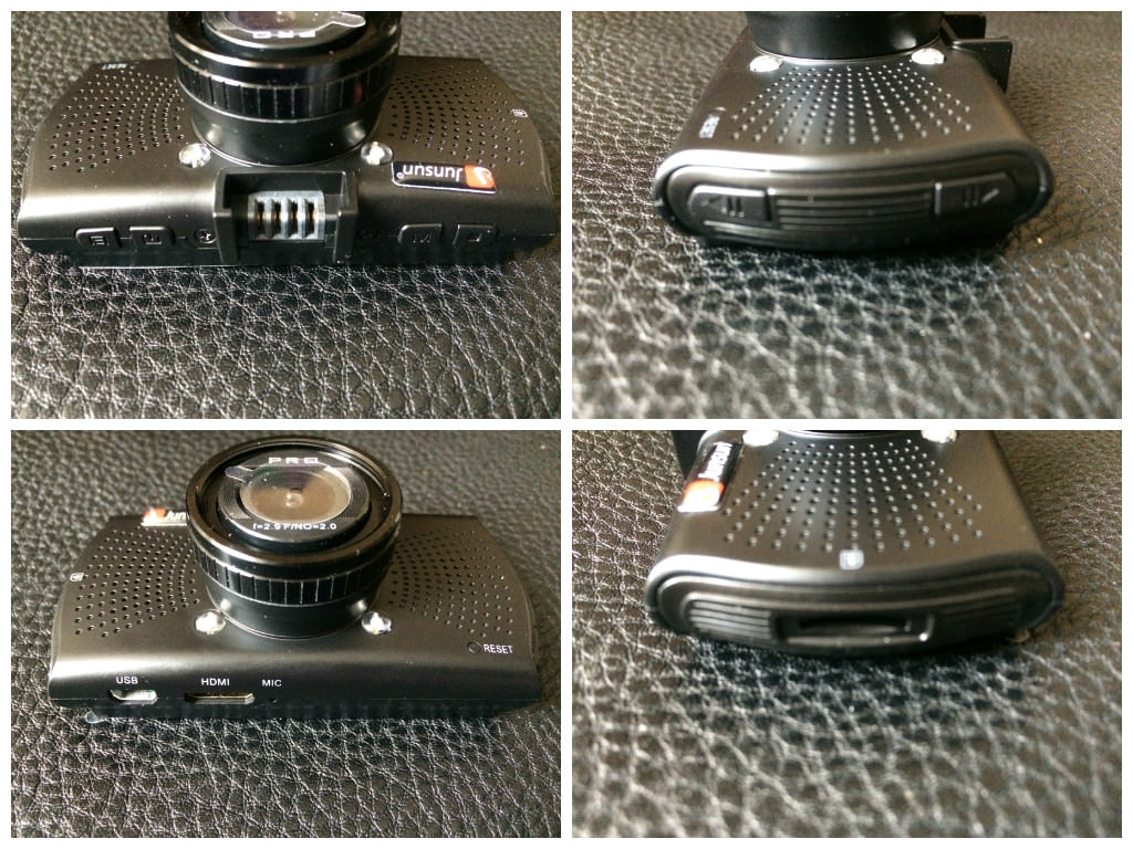 На передней панели находится кнопка Reset для сброса регистратора в случае зависания (забегая наперед: за время эксплуатации Junsun A7810 зависал у меня ровно один раз при подключении его к телевизору, и ни разу не зависал во время работы в автомобиле).