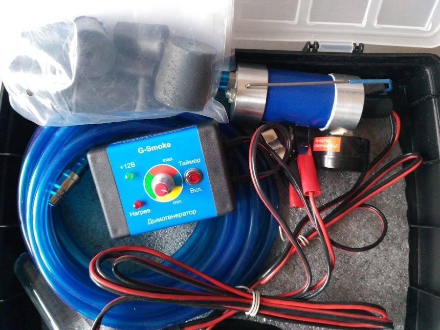 - Дымогенератор. Далеко не у всех автомобилистов есть такое приспособление, в связи с чем обычно его используют в автомастерских. Вы можете купить готовое решение или изготовить его самостоятельно (инструкций и видео в Интернете хватает). Суть в том, что необходимо обеспечить подачу дыма через любой шланг во впускной коллектор. В проблемных местах дым будет просачиваться.