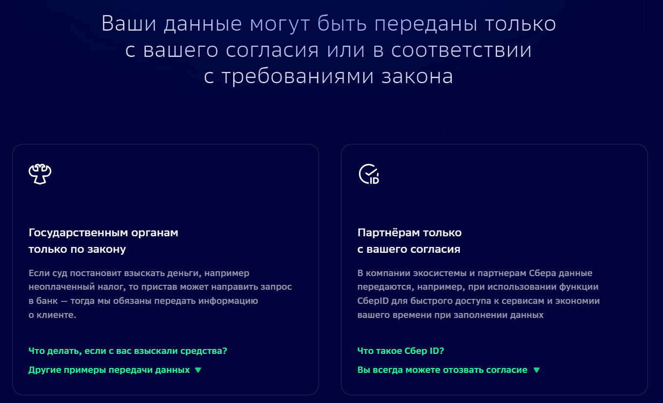 А вот так заботливо Сбербанк рассказывает пользователям о передаче их персональных данных третьим лицам: