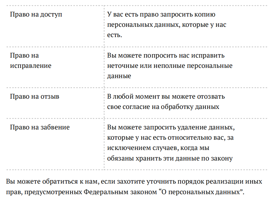 Все три действия важно прописать в политике конфиденциальности