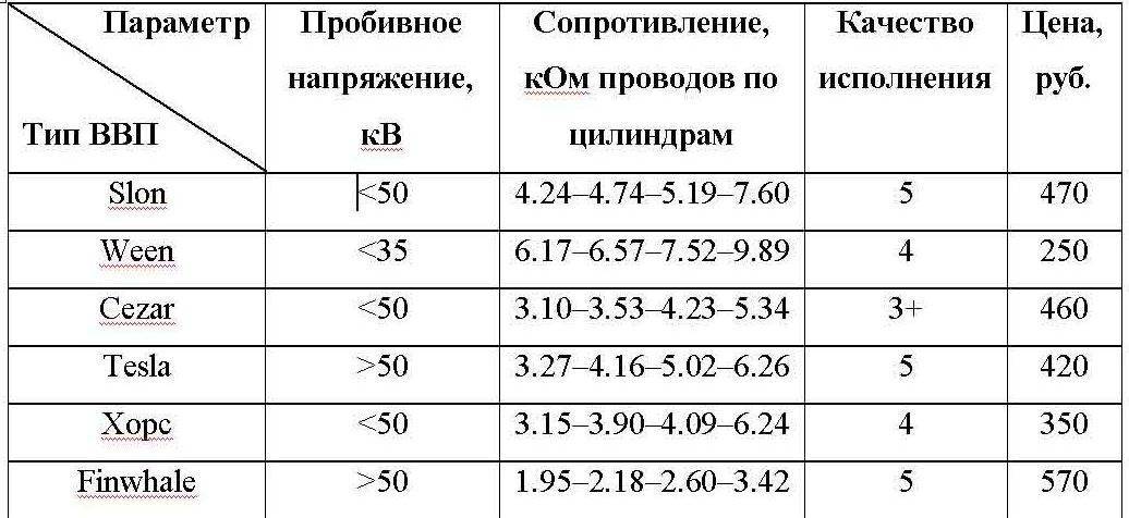 Также часто причиной попадания влаги считается то, что на корпусе трамблера или бронепровода образовалась трещина. Часто случается, что пробивает провода, особенно часто это происходит в морозы, затем туда может попасть вода, и начинается коррозия проводки. Самым лучшим вариантом будет найти неисправный кабель и заменить его на новый, ориентировочную стоимость можно посмотреть в таблице ниже.
