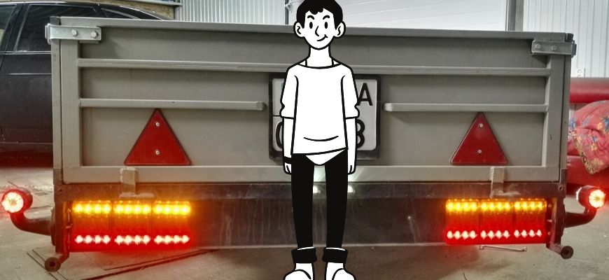 Устанавливаем стопы и повороты, а при желании гаки для крепления брезента. На прицеп установлены колеса от строительной тачки и заменены подшипники на отечественные.