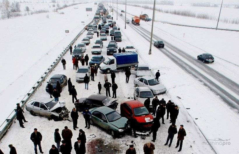 Групповое столкновение на трассе в гололед